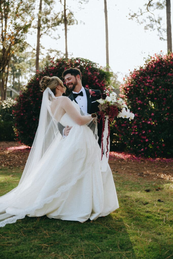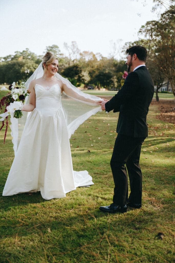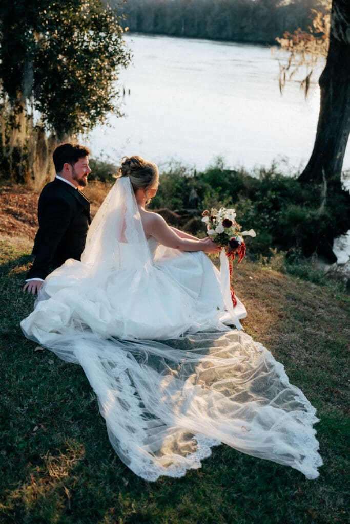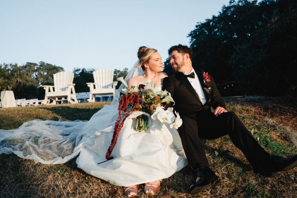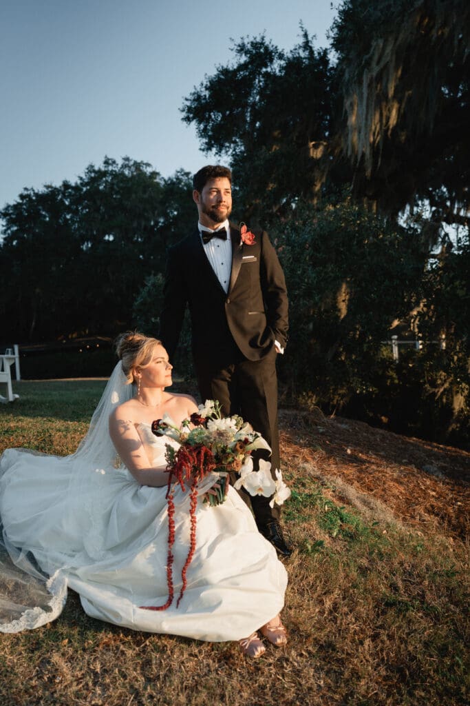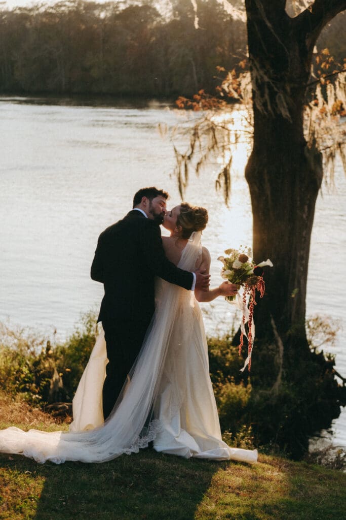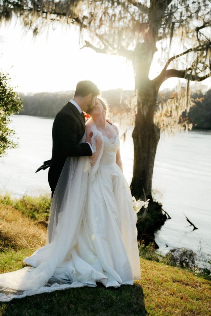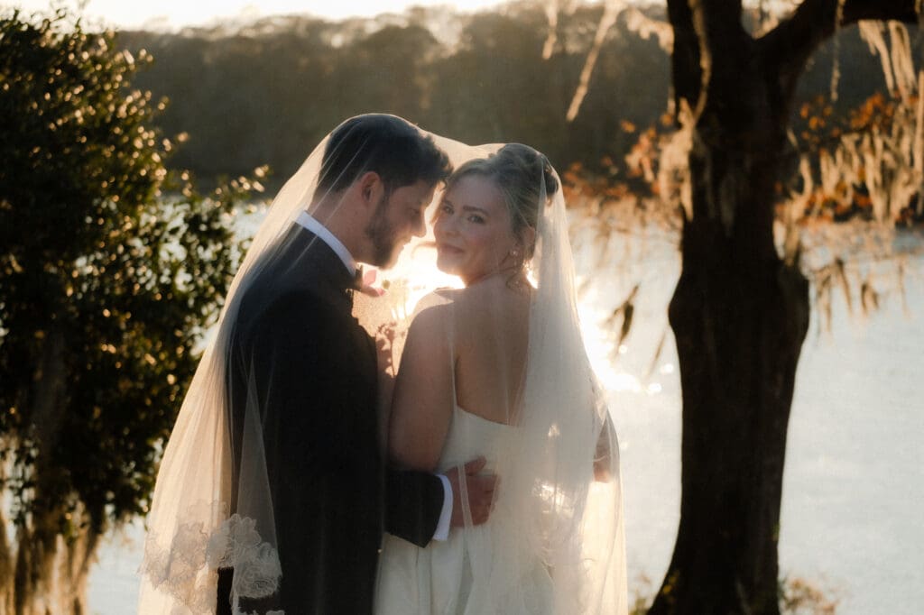 Tyler and Brittany’s Pawley’s Island Wedding at Kimbels felt like a dream. The sunset and golden hour light had me gasping at how simple and beautiful everything was. The brides veil blowing in the wind as she enjoyed looking out at the ducks in the water as her husband kissed her. It was like a movie, but better. It was a real wedding day.